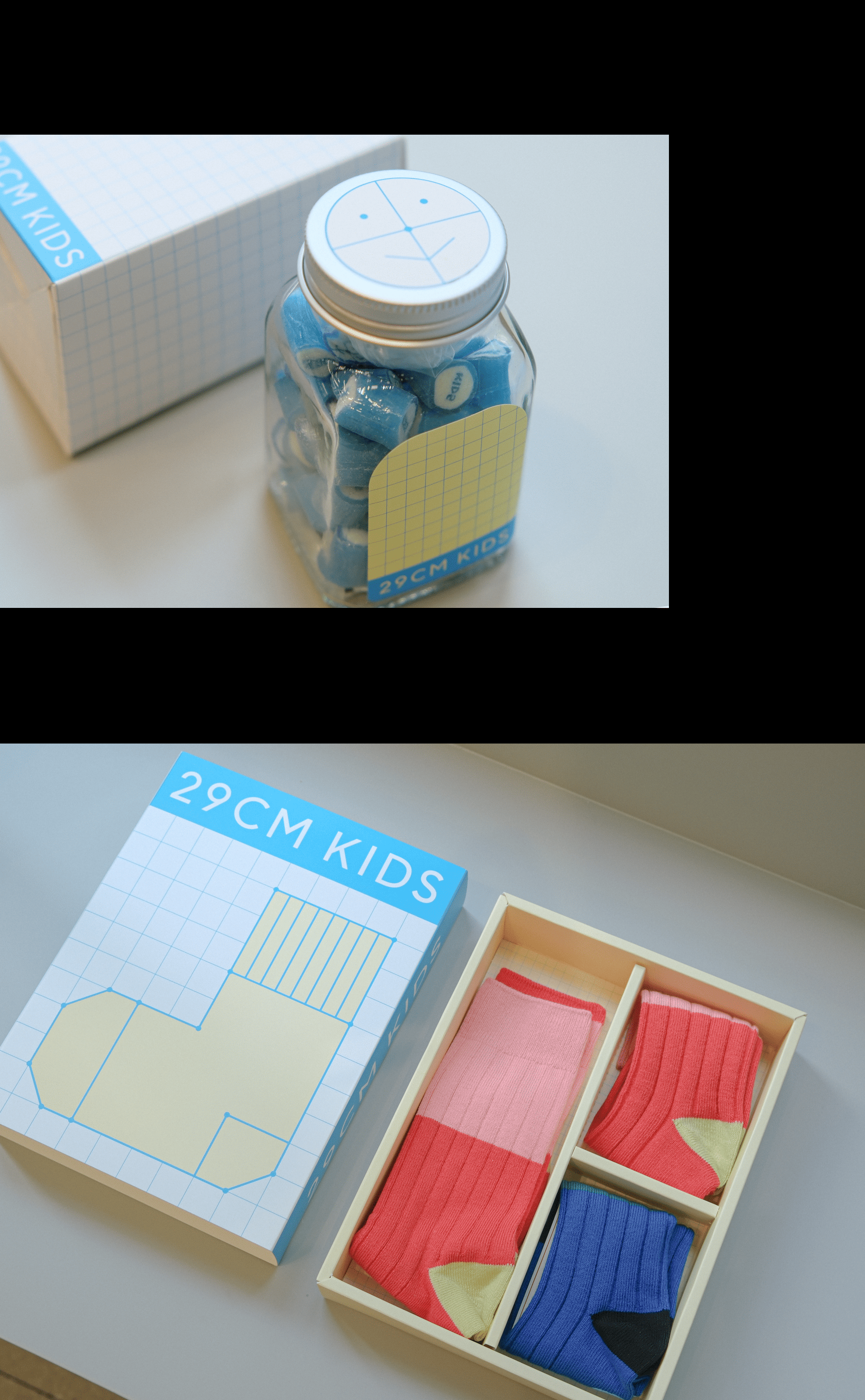 더불어 양말 브랜드 ‘아이헤이트먼데이’와 함께 엄마와 아이가 함께 신는 양말 세트를 기프트로 구성해 사전 바이럴 효과를 높였으며, VIP 고객 대상 증정 선물로 29CM KIDS 그래픽 모티프를 담은 캔디를 제작했습니다.